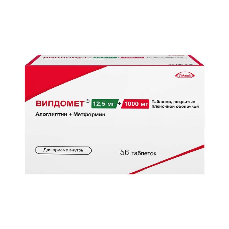 Препарат Випдомет® представляет собой комбинацию двух гипогликемических средств с взаимодополняющими и разными механизмами действия, предназначенную для улучшения контроля гликемии у пациентов с сахарным диабетом 2 типа: алоглиптина, ингибитора фермента дипептидилпептидазы-4 (ДПП-4), и метформина, представителя класса бигуанидов.