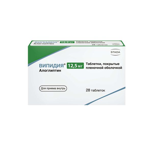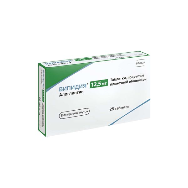 Рекомендуемая доза препарата Випидия составляет 25 мг один раз в сутки в качестве монотерапии или в дополнение к метформину, тиазолидиндиону, производным сульфонилмочевины или инсулину, или в качестве трёхкомпонентной комбинации с метформином, тиазолидиндионом или инсулином. Препарат Випидия может приниматься независимо от приёма пищи. Таблетки следует проглатывать целиком, не разжёвывая, запивая водой.