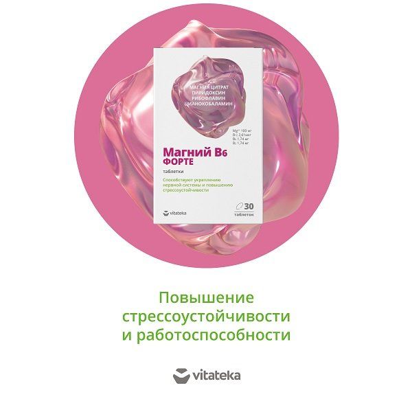 Витамин В6 – один из основных «антистрессовых» витаминов. Он способствует снижению восприимчивости к факторам, провоцирующим внутреннее напряжение, участвует в синтезе серотонина («гормона счастья»), улучшает настроение, поддерживает когнитивные функции при высоких психоэмоциональных нагрузках.