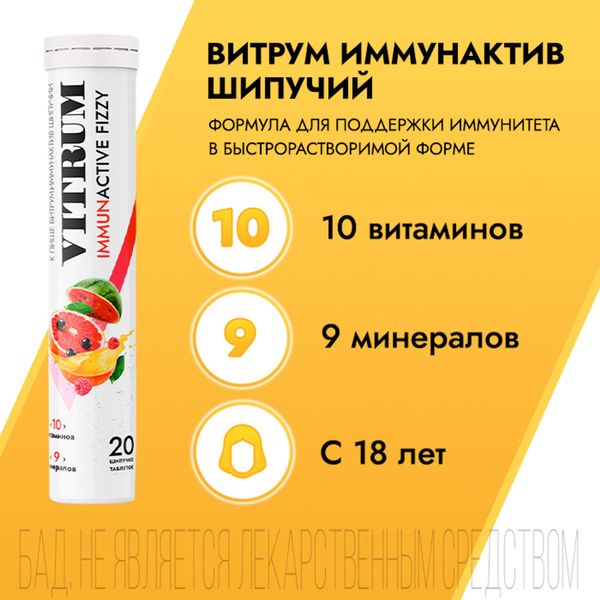 Витрум Иммунактив таблетки шипучие массой 3.8г №20