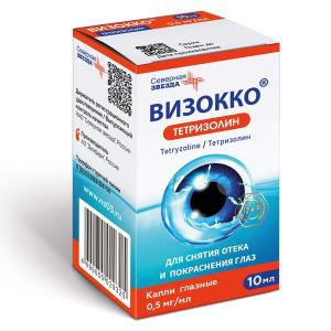 Препарат ВИЗОККО® содержит действующее вещество тетризолин — средство из группы производных имидазола. Он обладает сосудосуживающим действием и уменьшает отёк тканей.