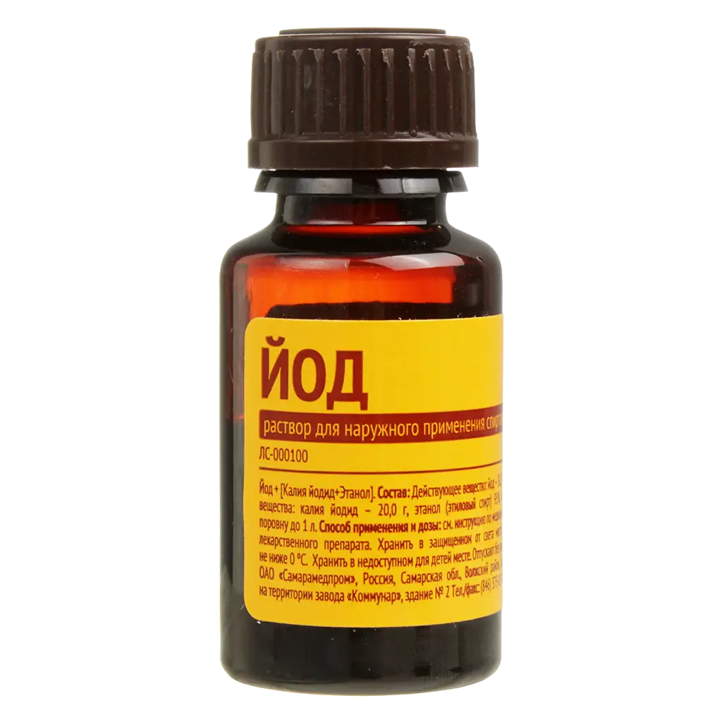 вспомогательные вещества: калия йодид 20 г, этанол 95 %, вода очищенная поровну до 1 л.