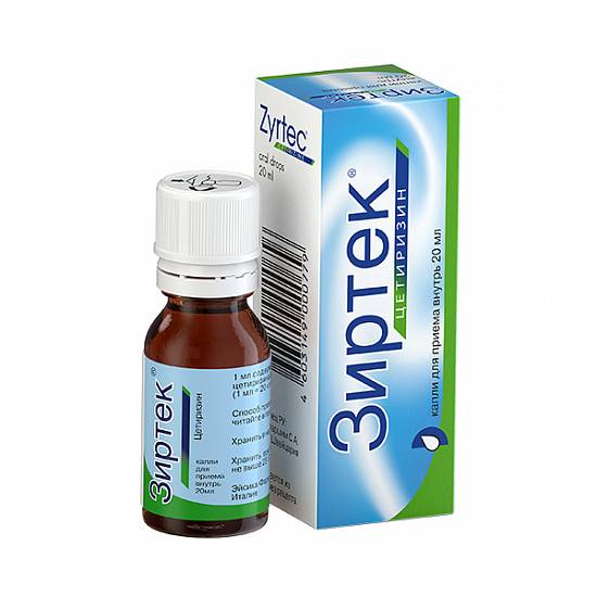 Цетиризина дигидрохлорид, капли для приёма внутрь 10 мг/мл, показан у взрослых и детей с 6 месяцев и старше для облегчения: