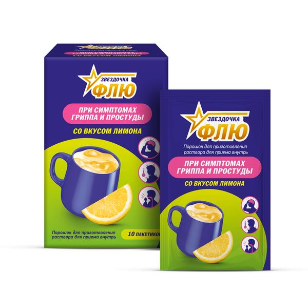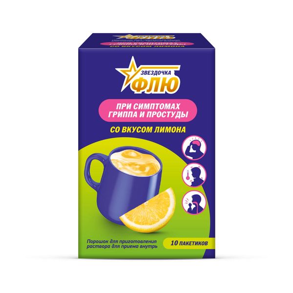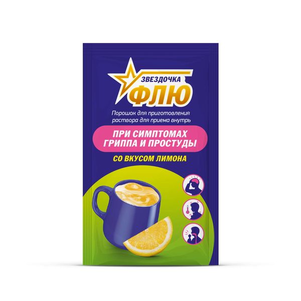 Звездочка флю порошок для приготовления раствора для приема внутрь лимонный пакетики №10