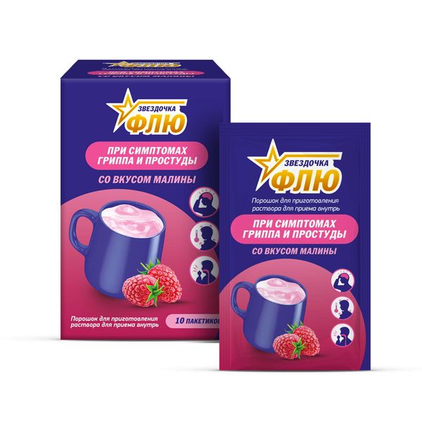 Звездочка флю порошок для приготовления раствора для приема внутрь малиновый пакетики №10